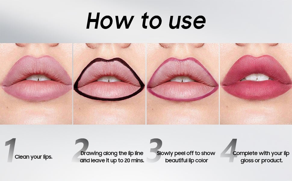 2️⃣ Using the precision-tip applicator, trace along the lip line in an even layer. Leave for up to 10-20 minutes. After the formula has been set, your fingers slowly peel the film tint off to unveil a smudge-proof, long-wear lip colour!